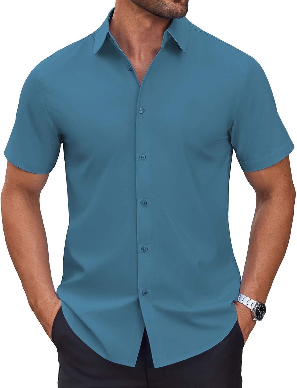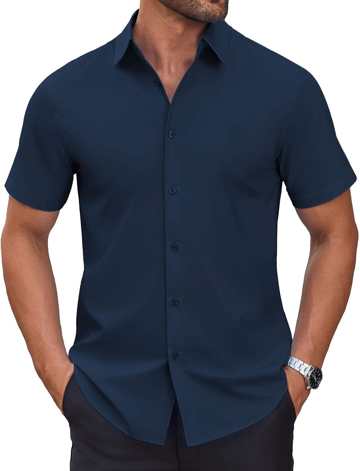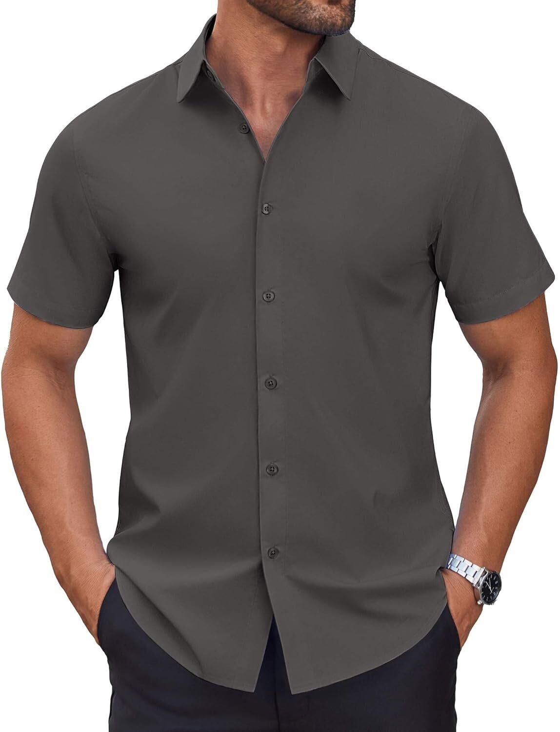 Men's Short Sleeve Dress Shirts Casual Button Down Wrinkle-Free Shirt