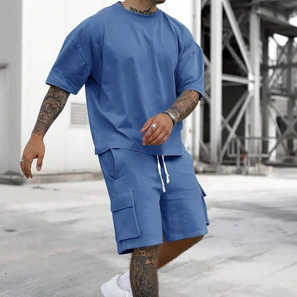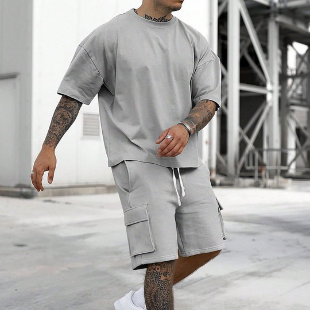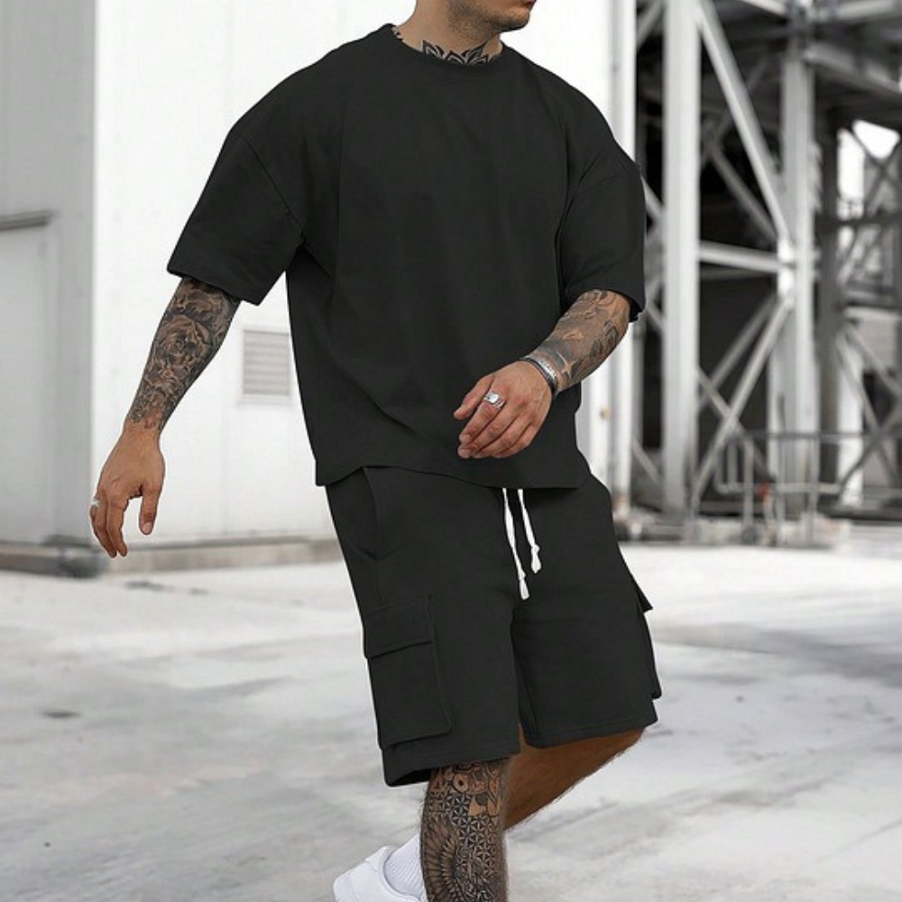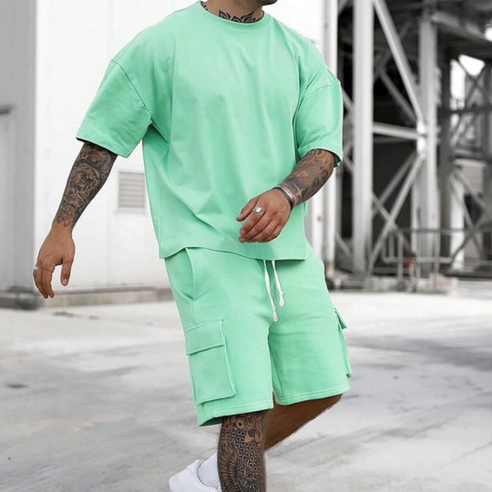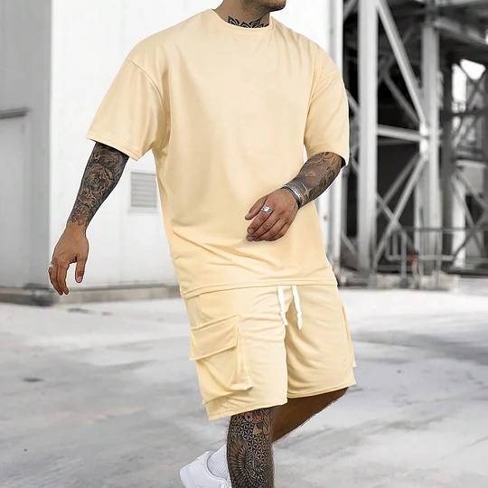 Men's Solid Tee & Cargo Shorts Set