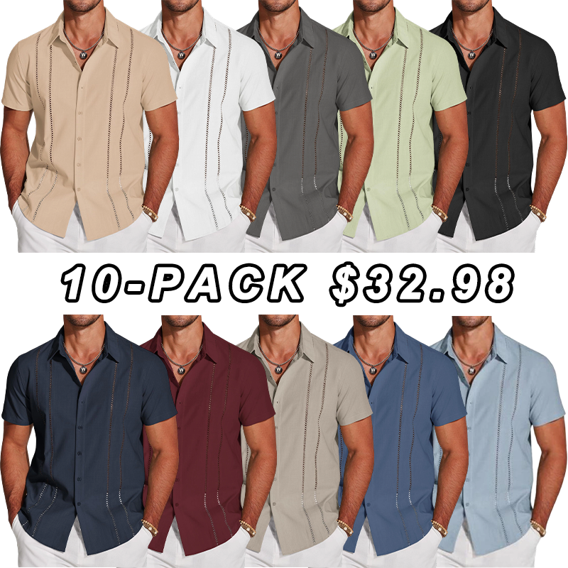 🔥Men's Cuba Guayabera Exquisite Hollow Embroidered Button Front Shirt