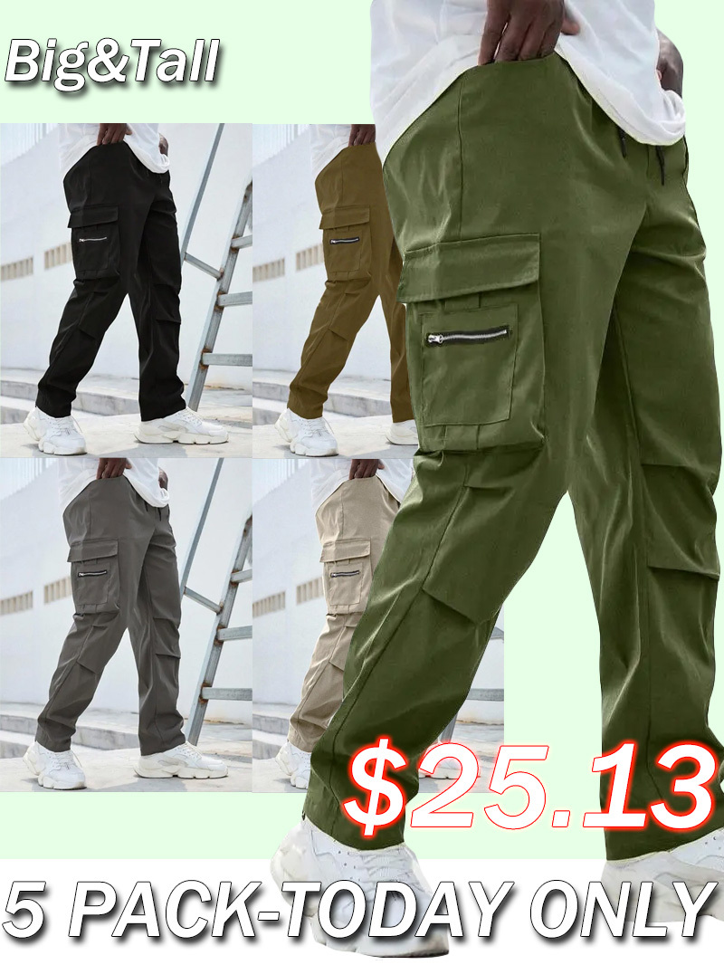 Men's Plus Size Plain Drawstring Waist Cargo Pants