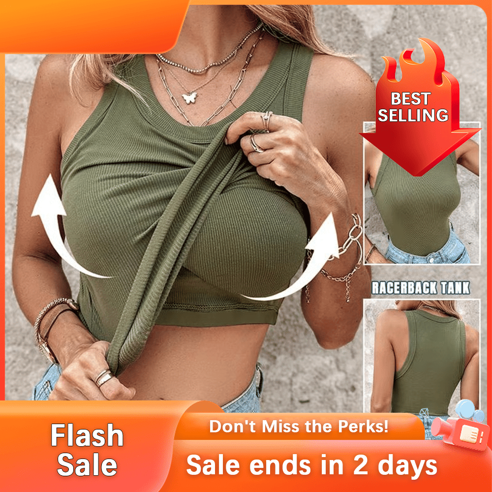 🏆Flash Sale⚡ 50K+ SOLD! Almost Gone-💥Chicme Round Neck Built-in Bra Ribbed Tank Top Fit Casual Comfortable-Best gifts