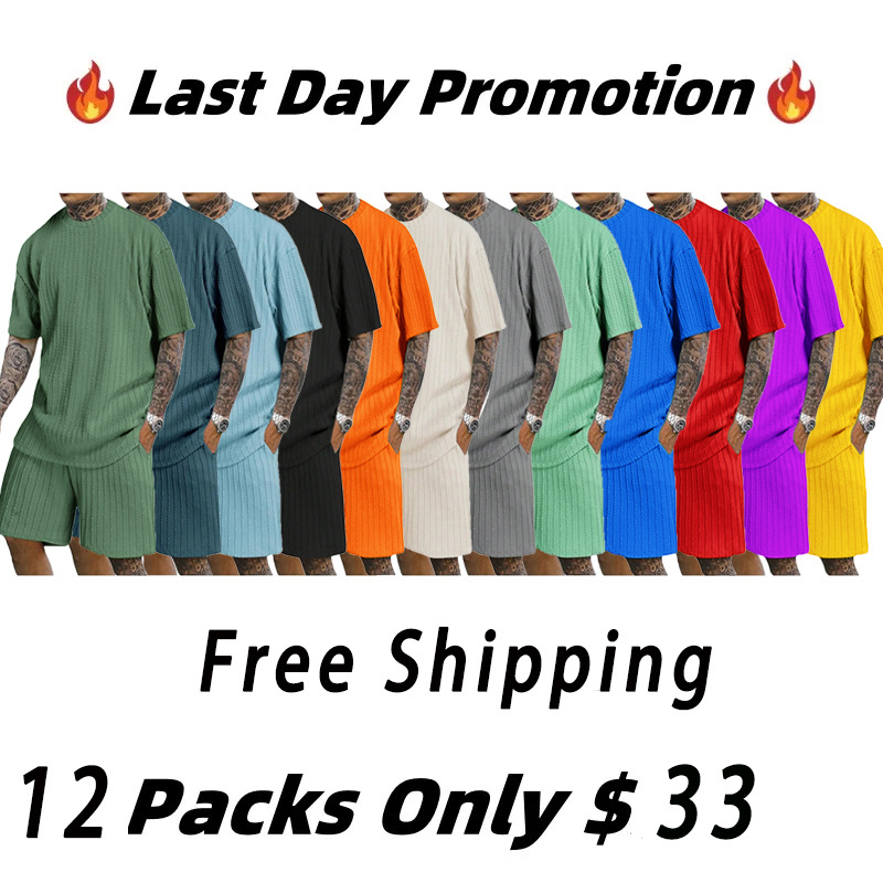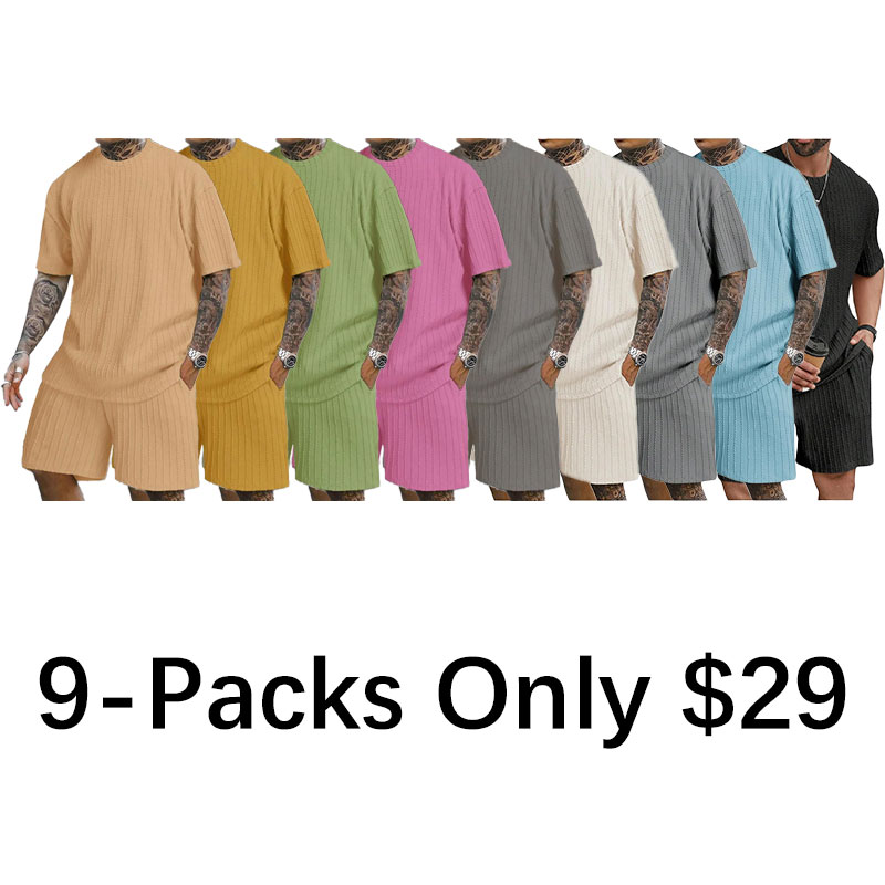 Men's 2 Piece Outfits Textured Drop Shoulder Short Sleeve Tee Tops and Short Sets Summer Outfits