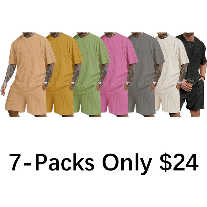 RoseSeek Men's 2 Piece Outfits Textured Drop Shoulder Summer Tops and Shorts Set