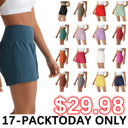 💝Last Day Promotion⚡12 piece ultra high waist back pocket and side hidden pocket 2 in 1 Yoga shorts