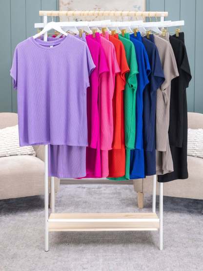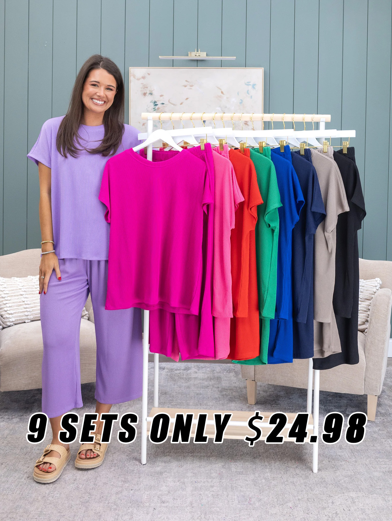 Features: Round Neck, Short Sleeves, Elastic Waist, Cropped, Wrinkle Free Set